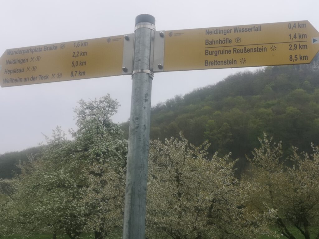 Über einen nahen Waldpfad ging es jetzt wieder ein wenig aufwärts. Am Waldrand entlang konnten wir nochmals diese grünen Streuobstwiesen bewundern, wobei insbesondere auch die die Echte Schlüsselblume (Primula veris) auffiel. Sie ist ein Frühlingsbote, wird auch Himmelsschlüssel genannt und ist vor allem im schwäbischen Dialektraum bekannt. In Schlaitdorf ist sie auch unter dem Namen „Badenga“ geläufig. Aber nicht zu vergessen sind auch die großen Flächen mit dem weit bekannten „Gaggelesbosch“, besser bekannt, wie von dem Schwäb. Uniforscher aus Tübingen Rudolf Bühler erforschten Dialekte unter https://www.schwarzwaelder-bote.de/inhalt.dornhan-loewenzahn-ist-ein-gaggelesbosch.49aab907-a844-47fb-ba25-5b92a650ccab.html, beschrieben ist. Gegen 16:00 erreichten wir schließlich unseren Parkplatz in Neidlingen. Bald waren auch wieder alle unsere PKW vor Ort und wir fuhren zurück nach Weilheim und von dort hoch zum „Deutschen Haus“ Richtung Gruibingen. Bei gepflegtem Essen und einem oder vielleicht auch zwei Bierchen ließen wir es uns bis in die Abendstunden gut gehen.